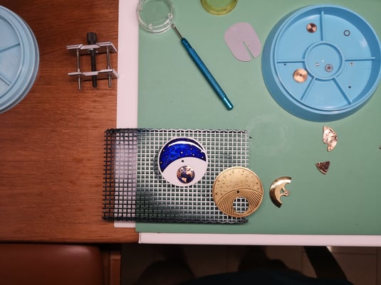 Geplant ist auf alle Fälle noch neben der Welt-Scheibenuhr eine Mariage Uhr mit einem wunderschönen South Bend Taschenuhrwerk, welches schon fertig restauriert wurde.