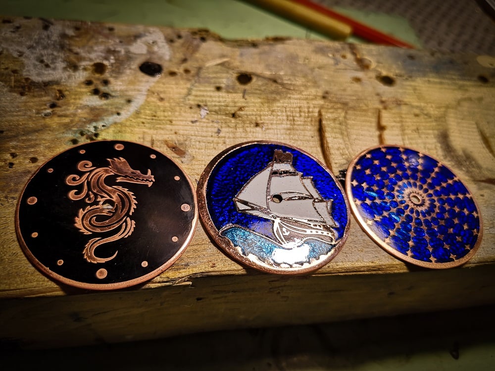 Emaille, die aufwendige Kunst, die nicht jeder beherrscht. Bei der Herstellung sind wir wieder ein Stück voran gekommen. Das Ergebnis kann sich auf jeden Fall sehen lassen. Kostbarkeiten in Form von Zifferblätter.