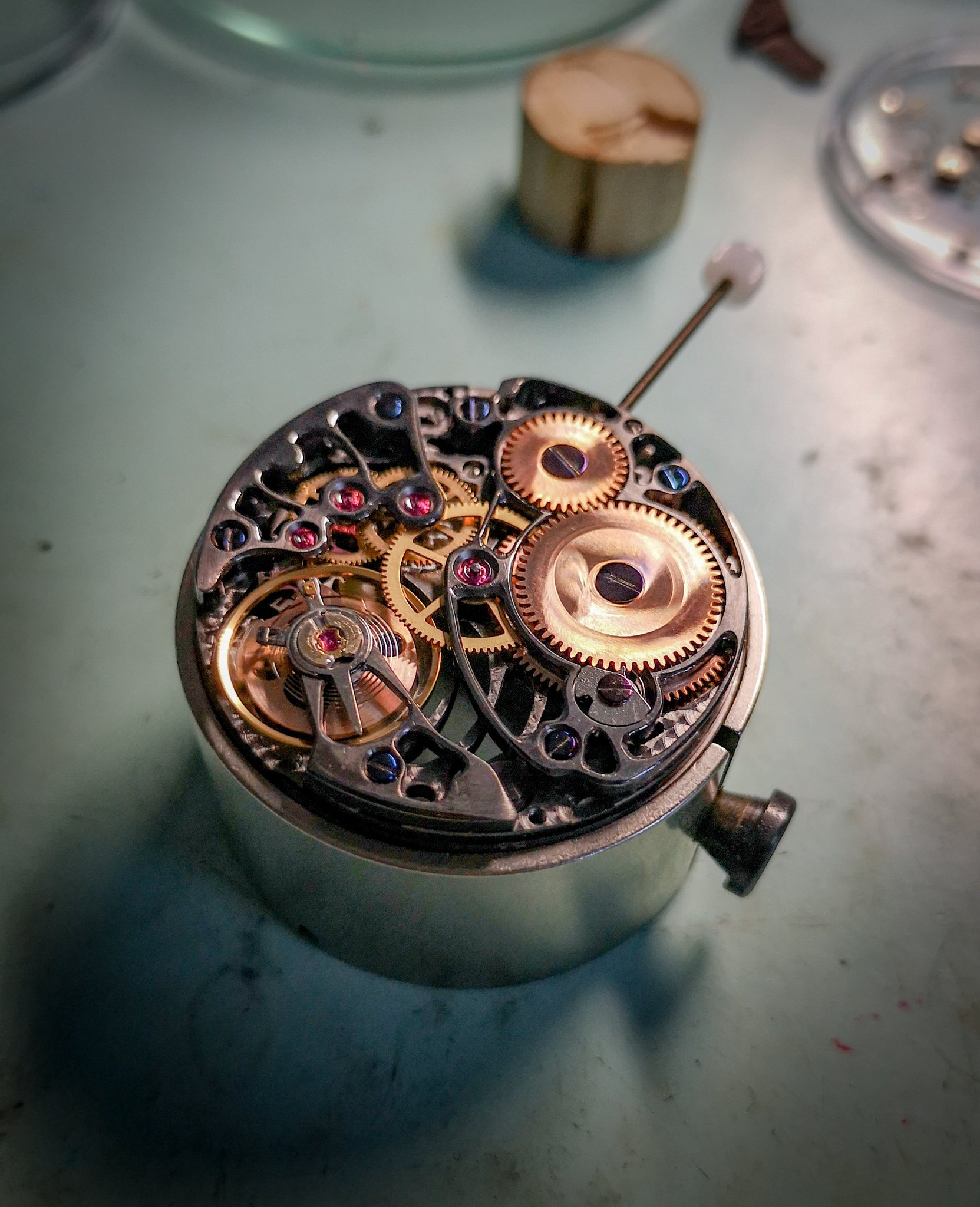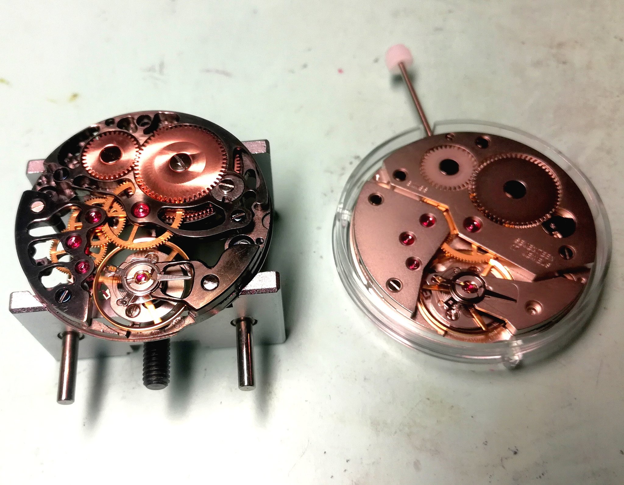 Jedes Uhrwerk wird von uns aufwendig veredelt und finnisiert bevor es eingeschalt wird. Dazu gehören unter anderen Streifenschliffe, Sonnenschliffe, Perlierungen, Bläuungen bei Werksschrauben, Kantenanglierungen, Vergoldung, Rhodinierung, spezielle Handpolituren und Schwarzpolituren. Keine industrielle Fertigung, sondern hochwertige Handarbeit.